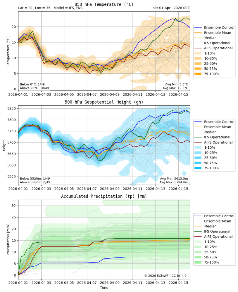 לפי אוסף הרצות ניסיוניות ארוכות טווח לא רואים גל חום ואף המשך תקופה קרירה יחסית עד סוף השבוע הראשון של יולי.