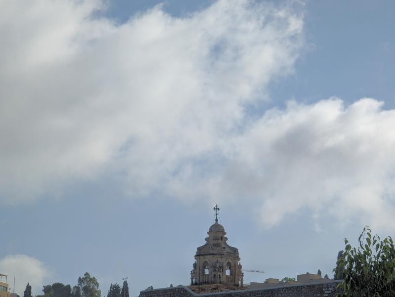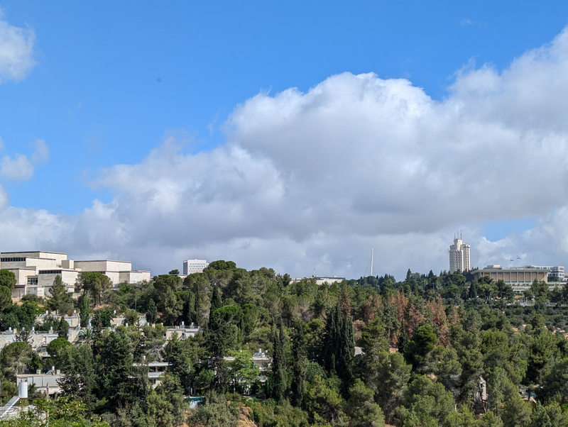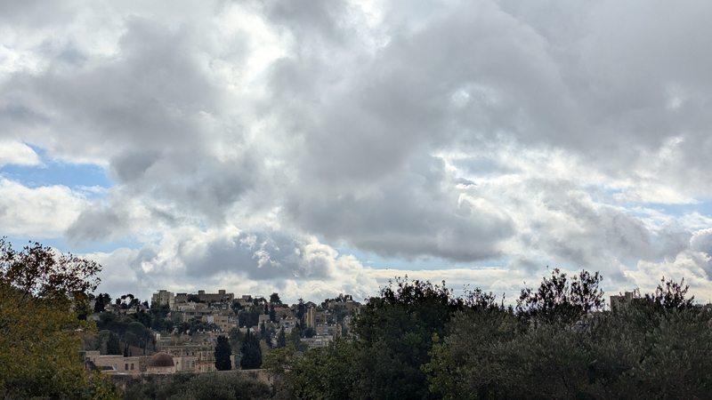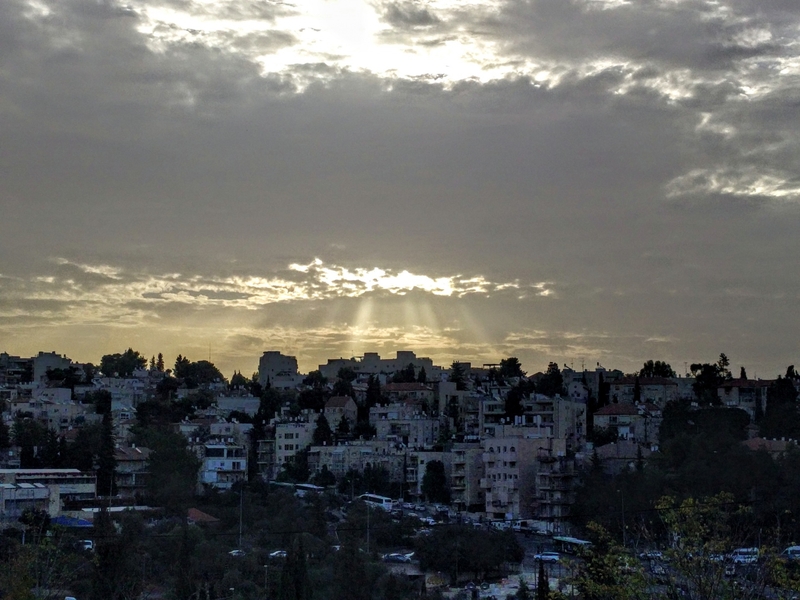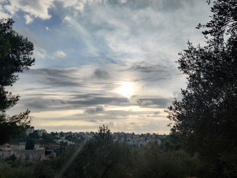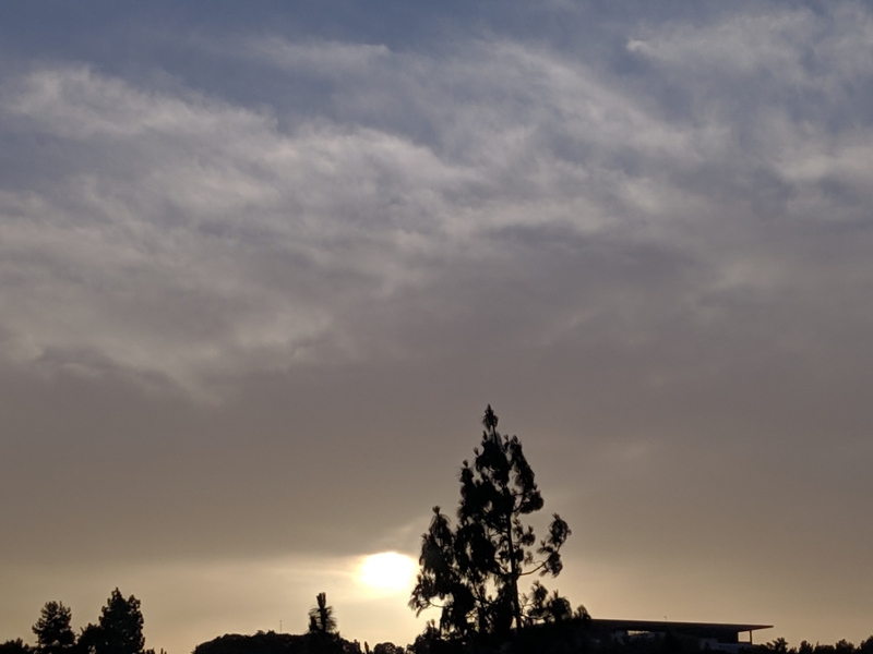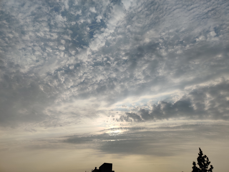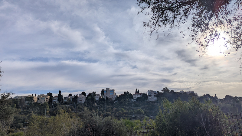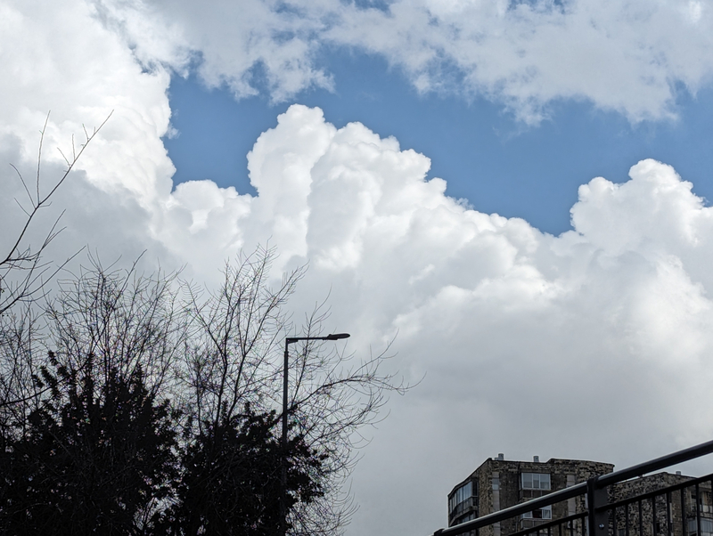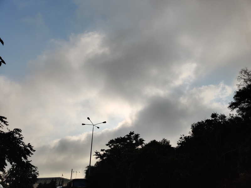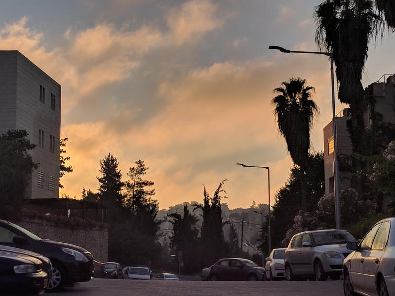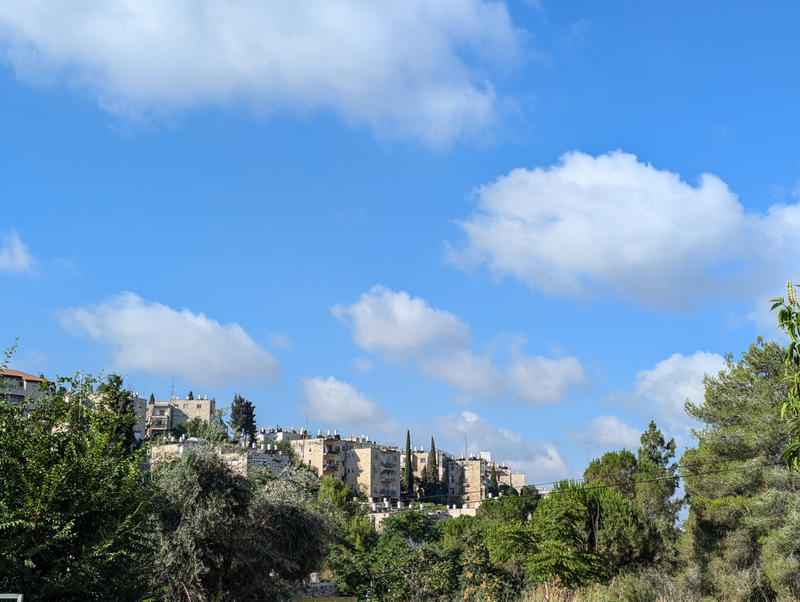 בוקר של עננים סוף סוף, אבל בלי רוח, כך שזה עושה אותו לח בלי רווח, חוץ מהרענון במראה השמיים