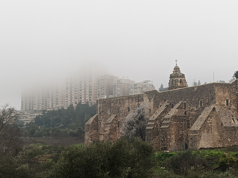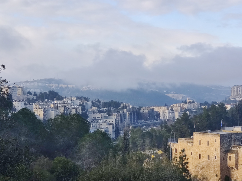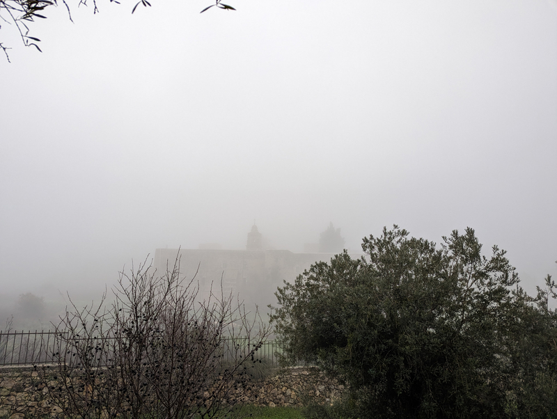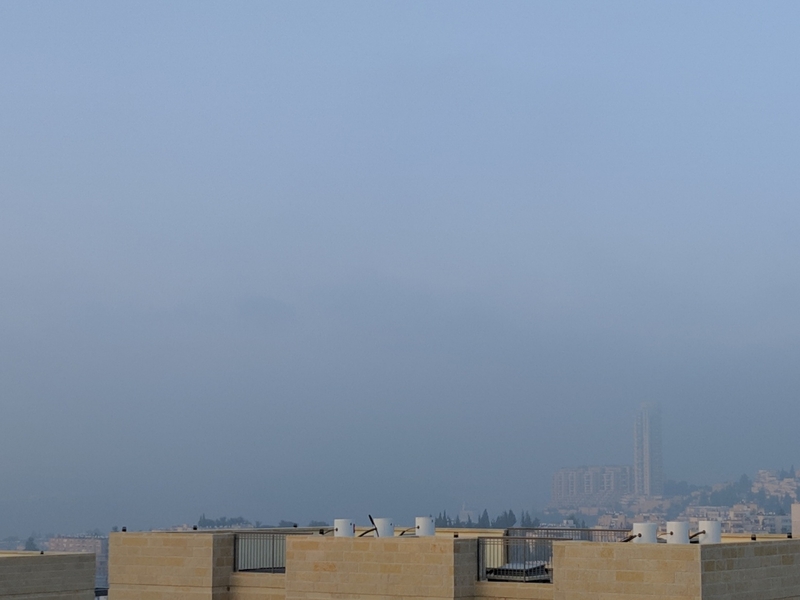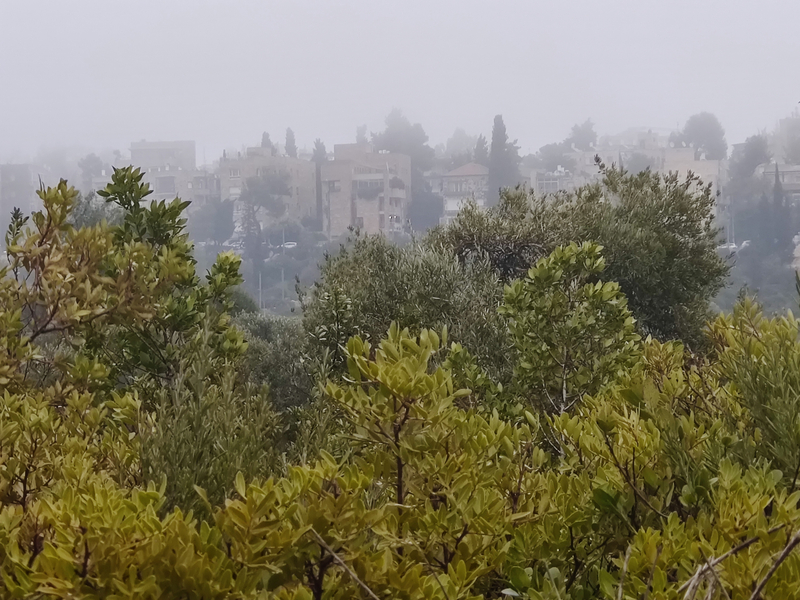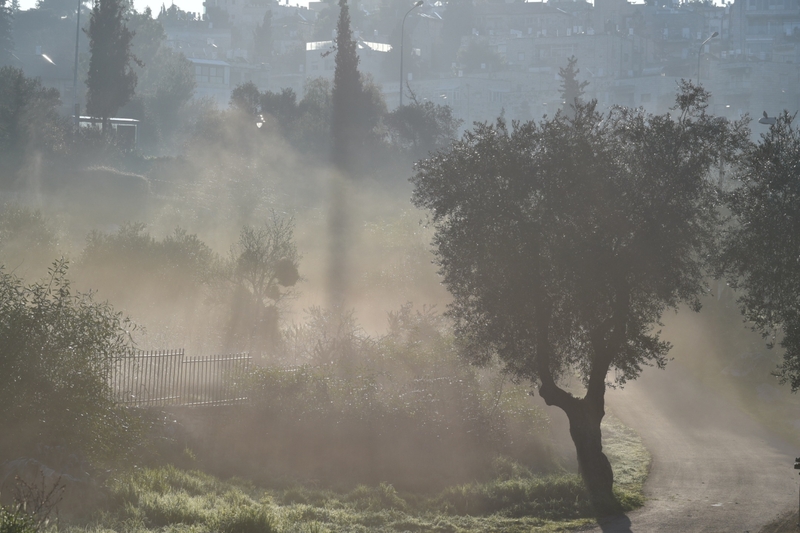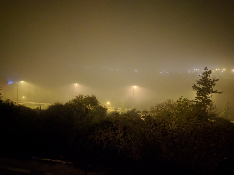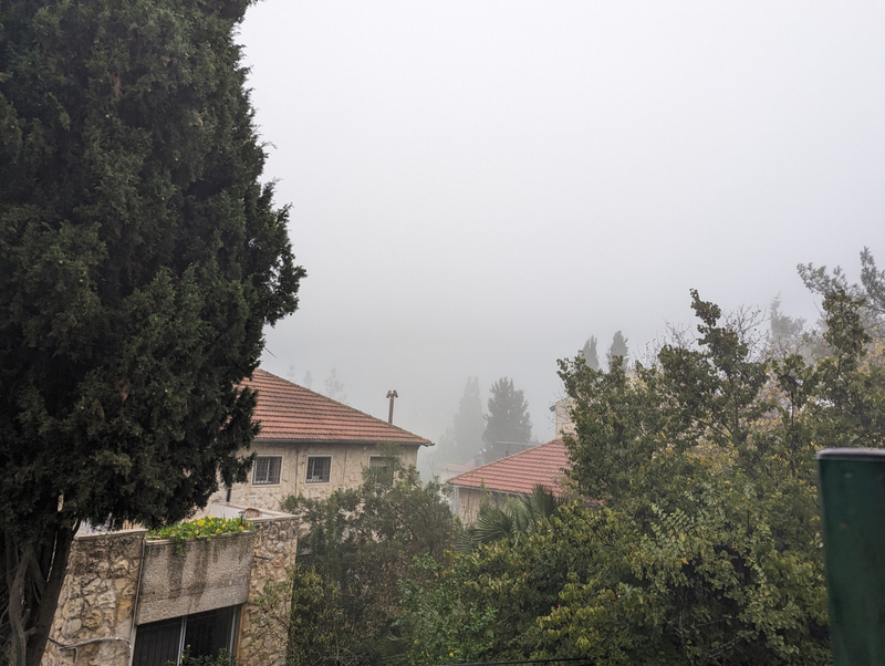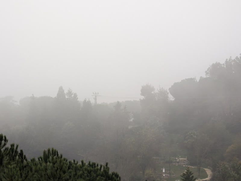 בוקר לח עם קרעי ערפל שנראה מרחוק כמו שמכת פוך דקה