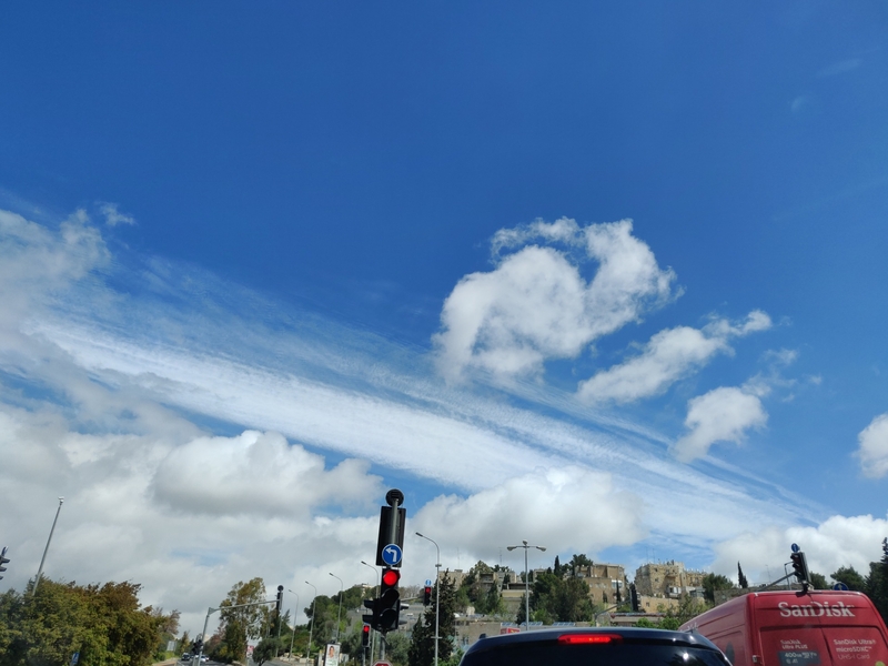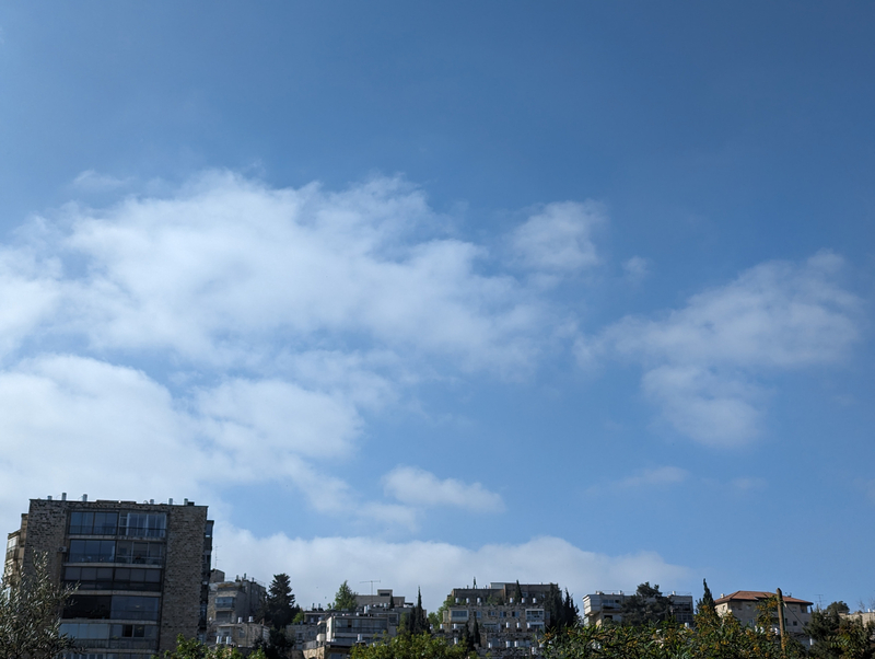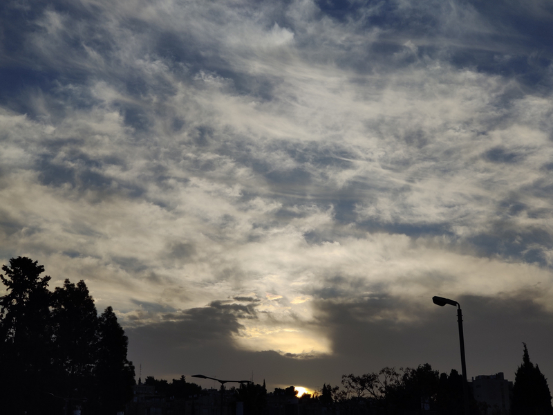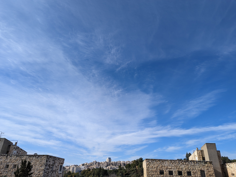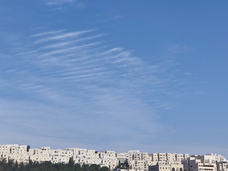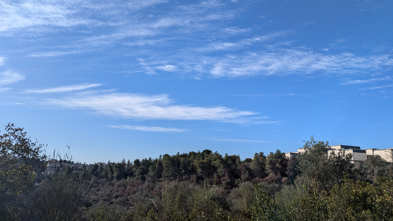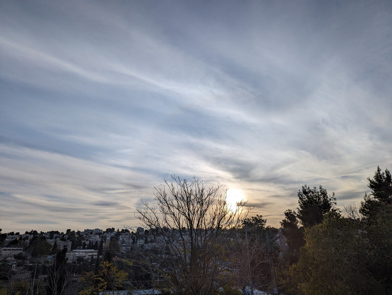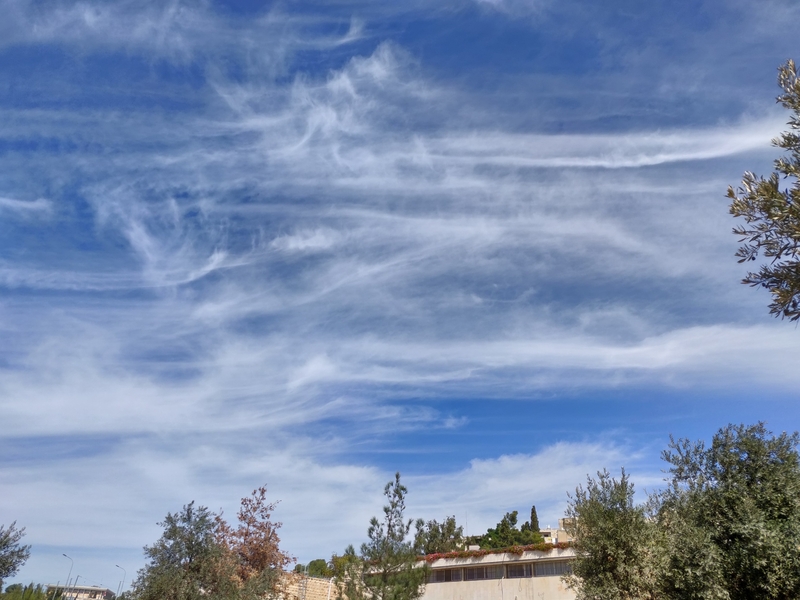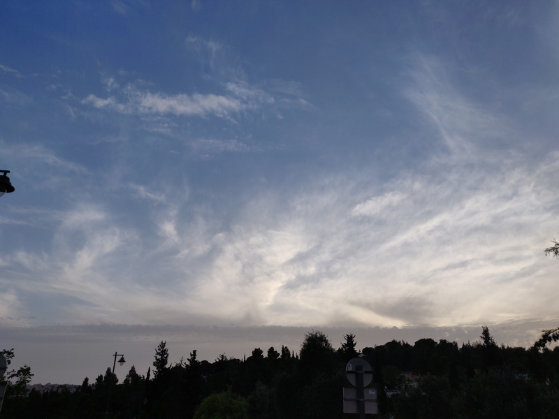 עננים דקים באופק המרבי שמתאדים בדרך מזרחה זה מצב הקיץ אולי הכי מבאס כי זה בא עם הלחות הכי גבוהה. הבריזה הזמנית מפצה.