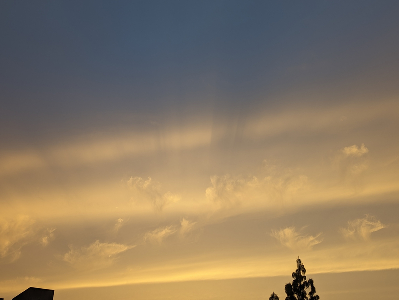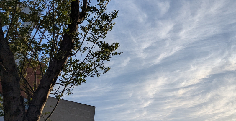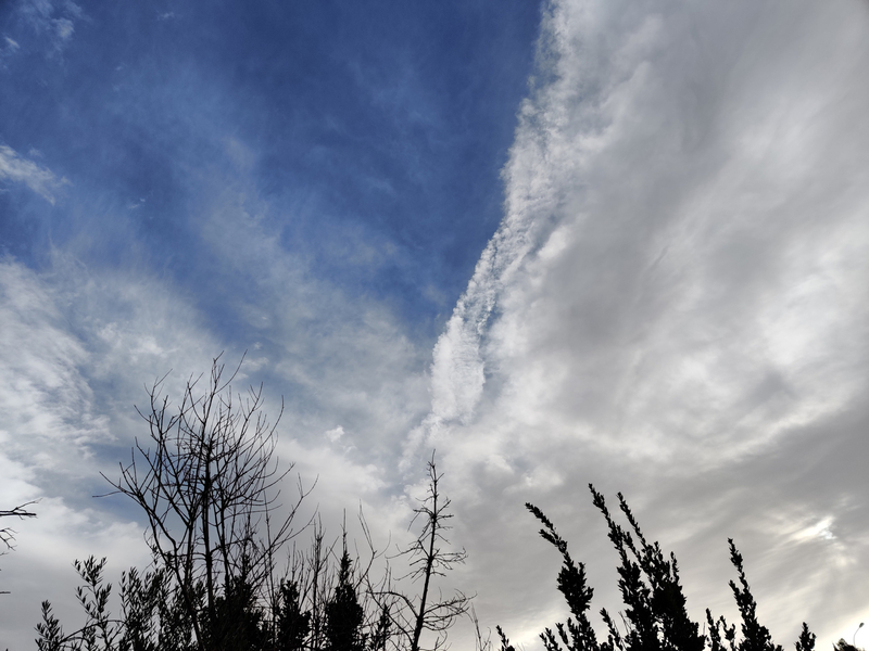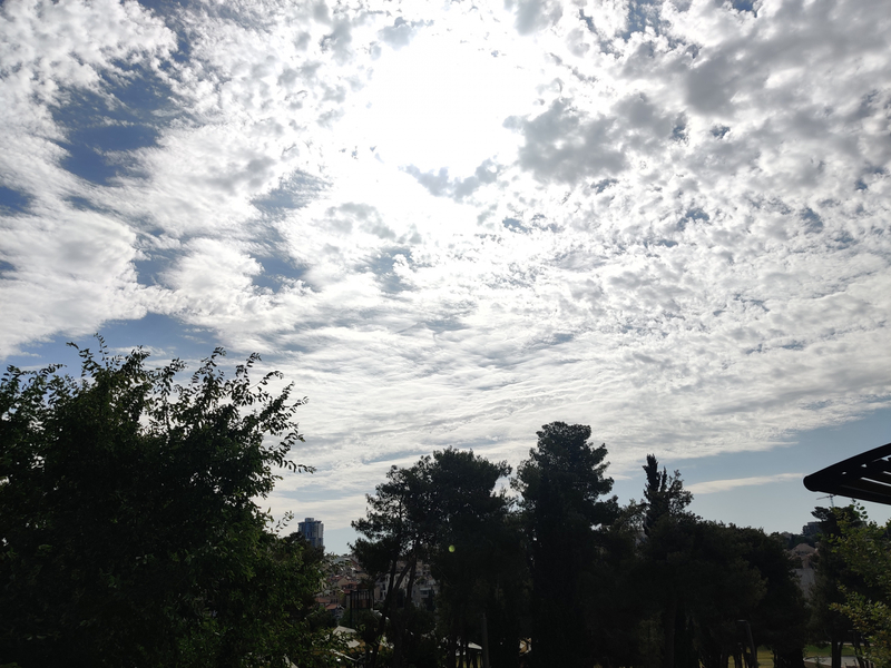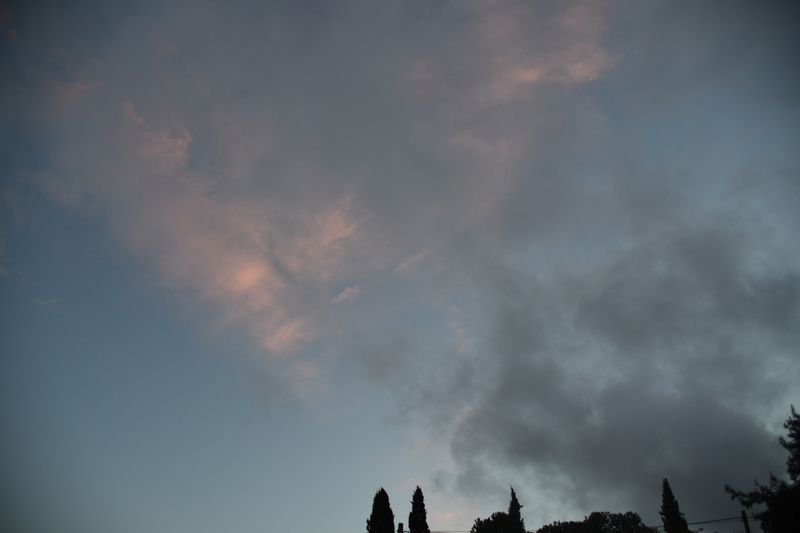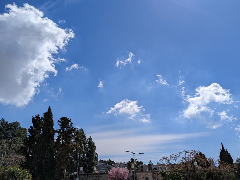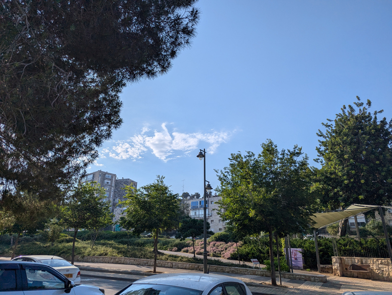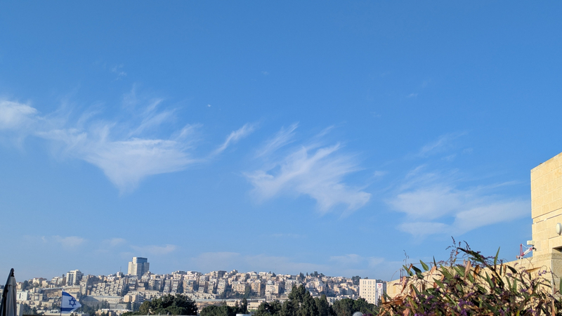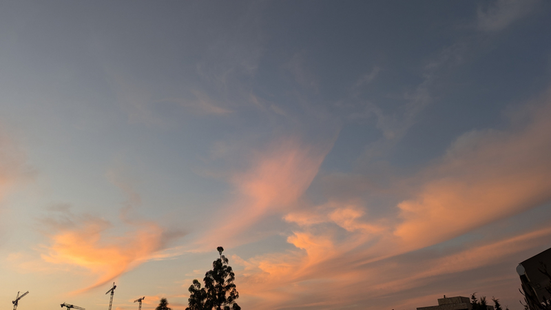 עננים דקים באופק המרבי שמתאדים בדרך מזרחה זה מצב הקיץ אולי הכי מבאס כי זה בא עם הלחות הכי גבוהה. הבריזה הזמנית מפצה.