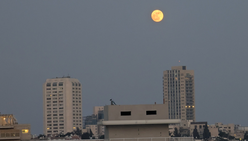 ליקוי ירח בשיאו מבעד לשכבה דקה של עננים