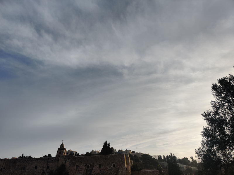 עכשיו מעונן. בבוקר מעונן תמיד פחות קר, כי העננים משמשים כמעין שמיכה ויש לחות גבוהה שתורמת לתחושת החום.